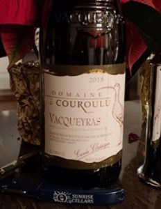 Vacqueyras is 1 of 9 crus in southern Rhone Valley, a region known for medium to full body red wines that has popularized the GSM blend (Grenache, Syrah, Mourvedre). Châteauneuf-du-Pape is the un-disputed king (full-body) of the region that is best with aging but other appellation wines (Côtes du Rhône) are approachable at young age (1-5 years).