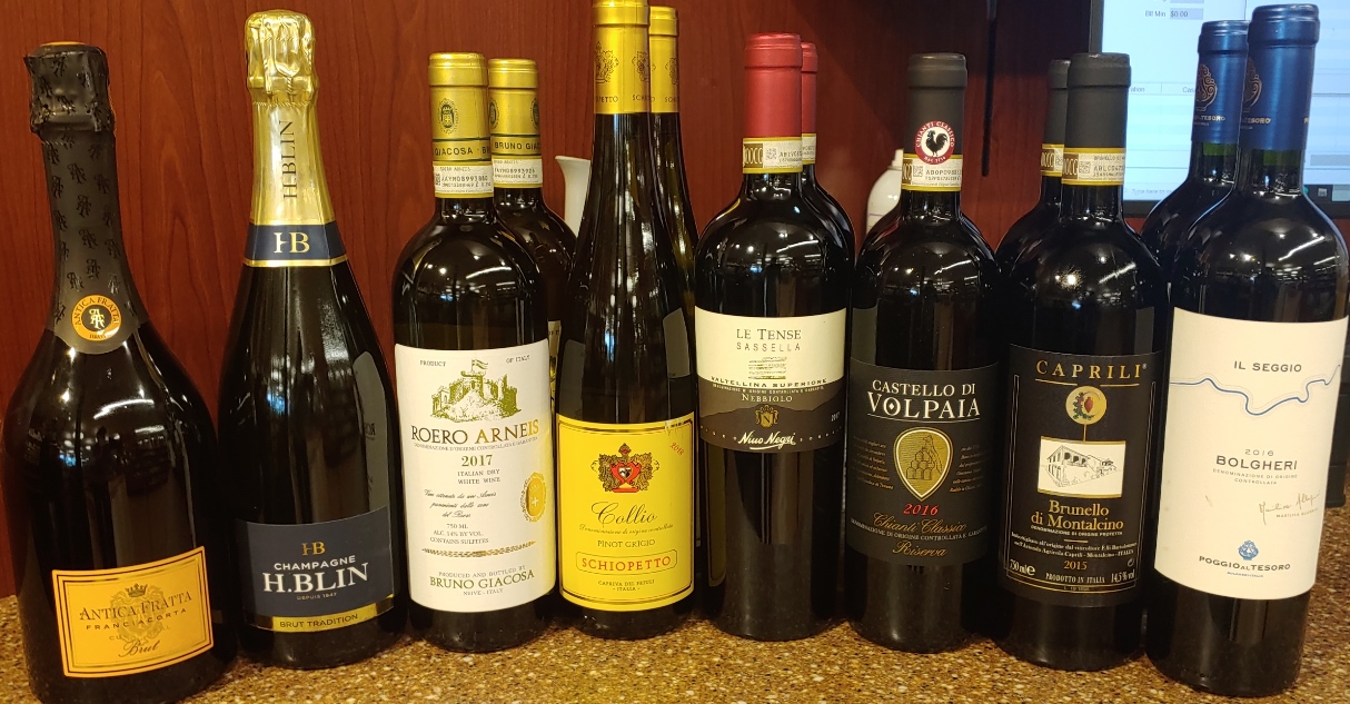 The theme was Italian and after discussion with hosts, I recommended 4 flights (sparkling, white, medium and full body red) with 2 wines in each flight. I deviated from the Italian theme to select Champagne (France) for a comparison with Franciacorta. Wines in each flight had similar prices.