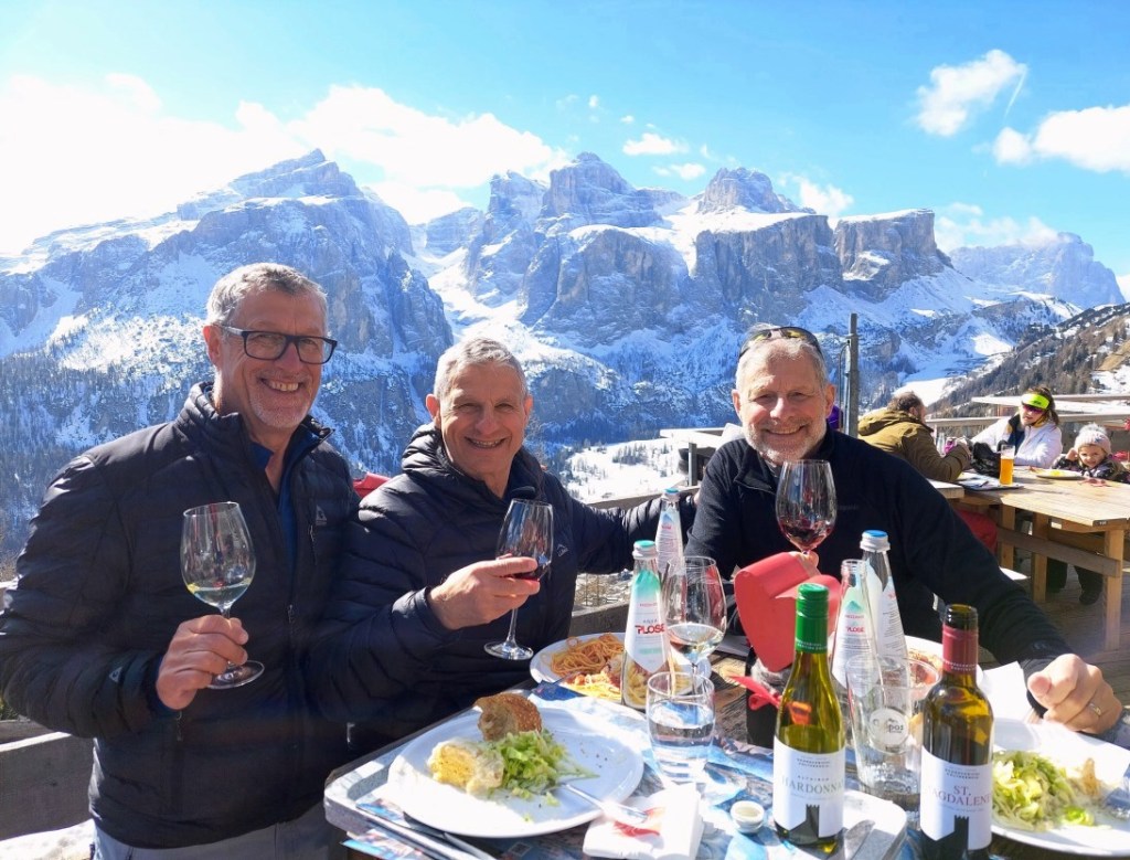 Recently I was uncomfortable during an unusual September heat wave, when I received this Instagram video (https://www.instagram.com/reel/CwKqYeUMyag/), a helicopter delivering beer to rifugios in the Dolomite mountains of northern Italy. It spawned memories of skiing this year in Val Gardena and Cortina d’Ampezzo. The winter of 2023 dumped epic snow in the Rockies but the European Alps had little snow . However, we were not disappointed – “i dolomiti esperienza” was SPETTOCOLARE (spectacular). Quite different than skiing the Rockies’ bottomless powder, skiing in Europe is about the total experience. It’s touring on alpine skis from village to village while enjoying the culture, the people, the food and “la dolce vita” (the sweet life).